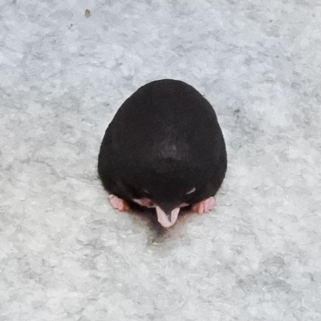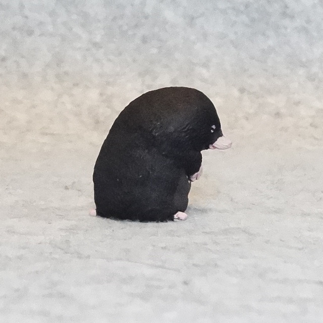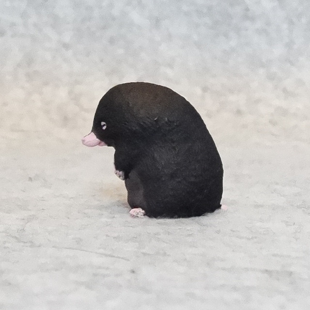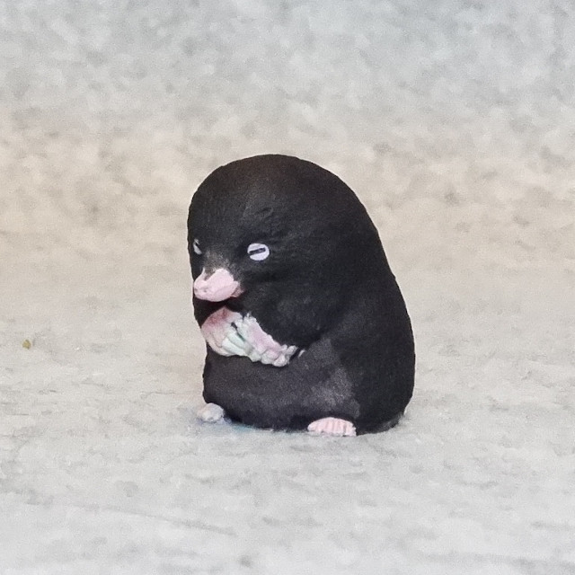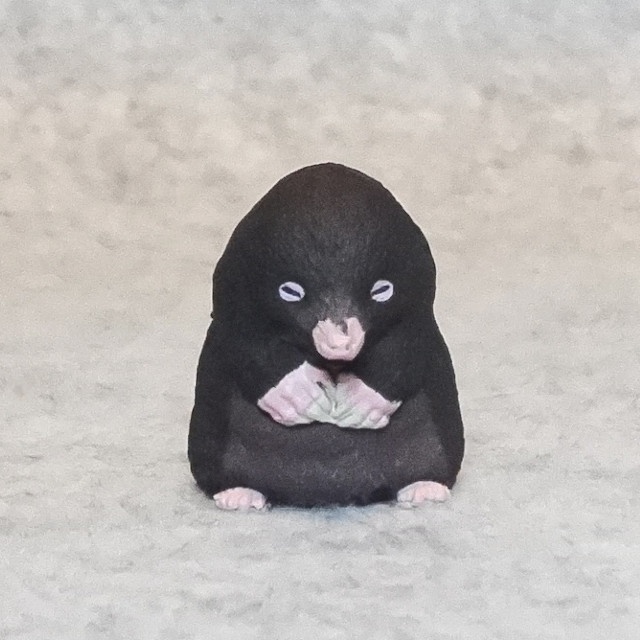 前に手を組み目線を下げるモグラは高級旅館の仲居さんのよう