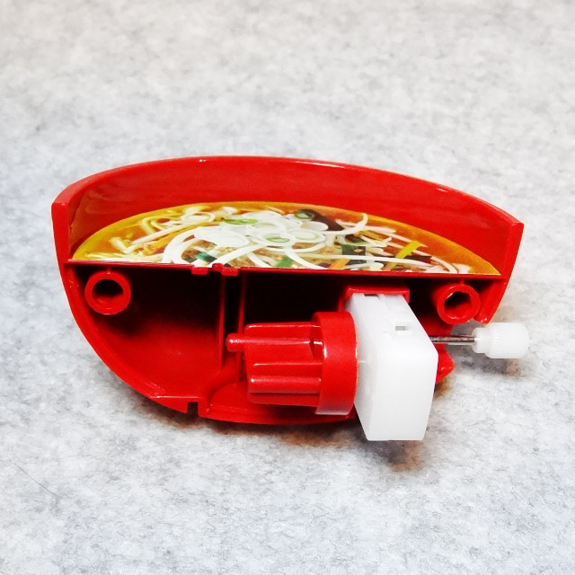 赤いドンブリのもやし味噌をゲット カプセルの下側がそのままドンブリになっています